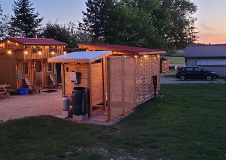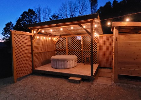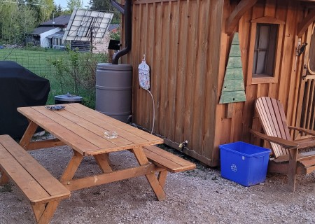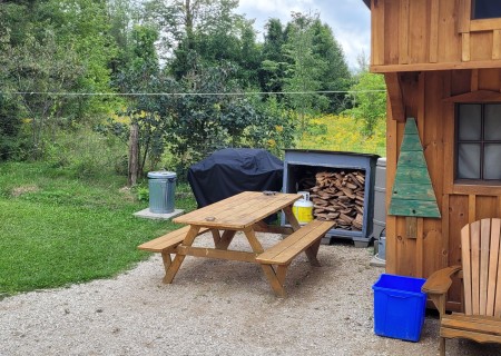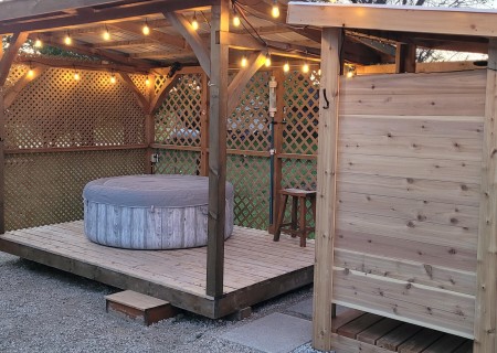 On the same property, I designed and manage a unique year-round retreat: a wood-stove-heated tiny home situated 235 feet back from Highway 6. This isn't a generic rental; it’s a specific experience I created for couples, featuring a private covered hot tub, a campfire pit with supplied wood, and on-site hiking trails through our hobby farm’s wooded areas. From electrical work to the seasonal maintenance of the outdoor shower and hot tub, I handle all aspects of its operation. This hands-on management ensures every amenity—from the propane BBQ to the high-speed WiFi—functions as promised.